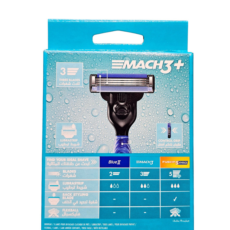 تیغ +Gillette MACH3 با پوشش پیشرفته ضد اصطکاک پوشش داده شده است که به +MACH3 اجازه می دهد هر مو را با احساس سوزش کمتری از بین ببرد. میکروفینهای نرم و محافظ به آرامی پوست را صاف میکنند و به +MACH3 اجازه میدهند تا به طور یکنواخت و بدون زحمت اصلاح شود. نوار روانکاری نشانگر کمک می کند تا اطمینان حاصل شود که تیغ ریش تراش +MACH3 شما همچنان روی پوست شما حرکت می کند، پس از اصلاح اصلاح کنید. خودتراش ژیلت مچ تری پلاس +MACH3 یکی از بهترین محصولات برند ژیلت می باشد که دارای 3 لبه تیز و لیزری است که موجب تسهیل روند اصلاح می گردند .